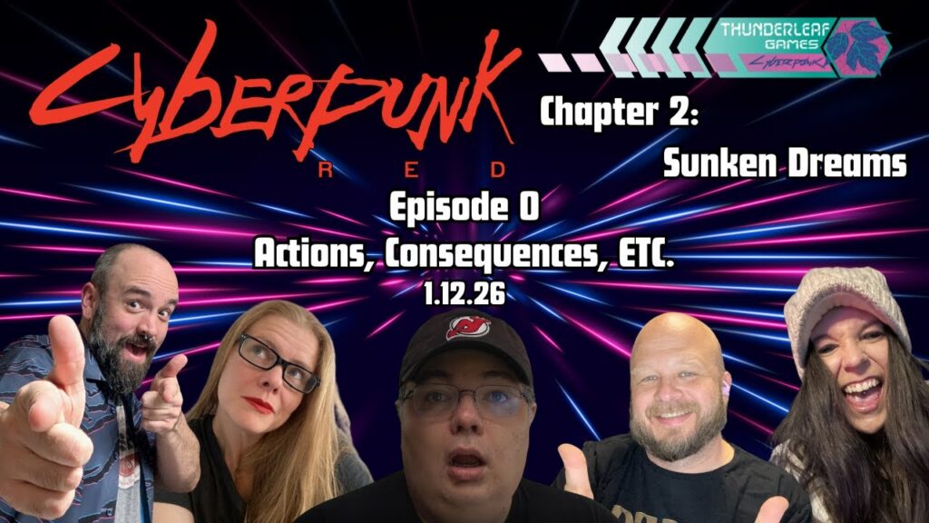 A brief recap of what happened in chapter 1 of our Cyberpunk ttrpg Actual Play campaign. There were hijinks, laughs, chaos, romance, and so much more. Last season, the Thunderleaf Games team made waves in Cyberpunk Red, wreaking havoc on…